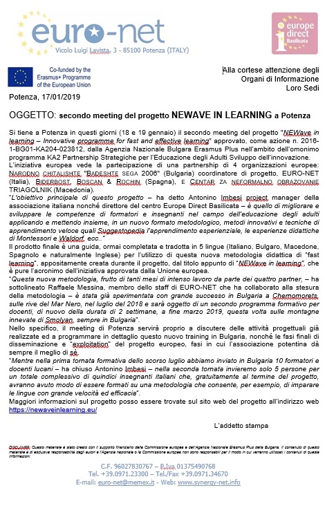 realizzato ed inviato a tutti i media in data 17/01/2019
