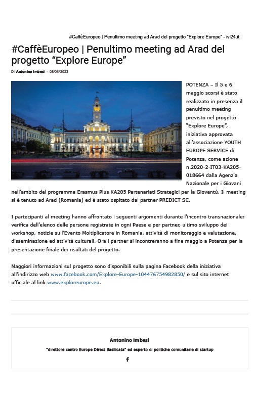 173-Penultimo meeting in Arad per il progetto EXPLORE EUROPE