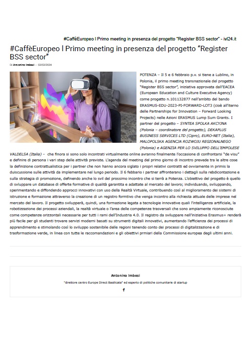 57-Primo meeting in presenza a Lublin per il progetto Register BSS Sector