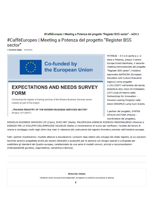 167-Meeting a Potenza per il progetto "Register BSS sector"