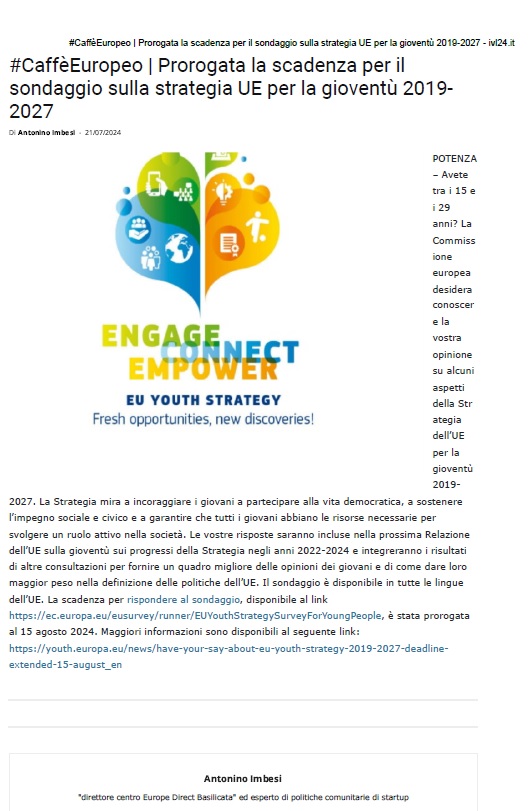376-Prorogata la scadenza per il sondaggio sulla strategia UE per la gioventu' 2019-2027