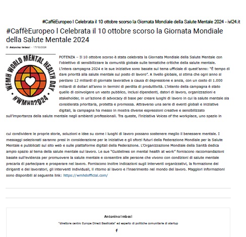 522-Celebrata il 10 ottobre scorso la Giornata Mondiale della Salute Mentale 2024