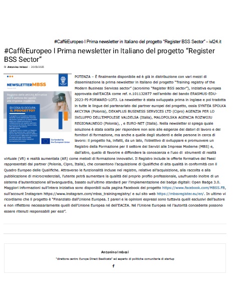 161-Prima newsletter in Italiano del progetto “Register BSS Sector”