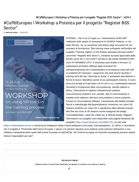 332-A breve Workshop a Potenza per il progetto “Register BSS Sector”