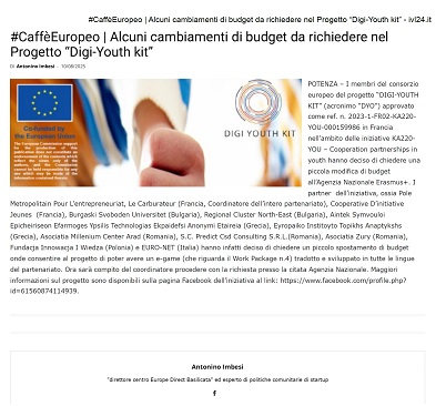 404-Alcuni cambiamenti di budget da richiedere nel Progetto “Digi-Youth kit”