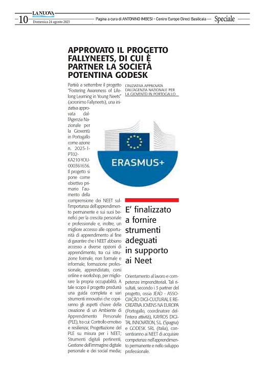 413-Approvato il progetto FALLYNEETS, di cui è partner la società potentina GODESK