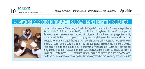 446-Corso di formazione sul Coaching nei Progetti di Solidarietà (3-7 novembre 2025)