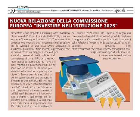 457-Nuova relazione della Commissione europea "Investire nell'istruzione 2025"