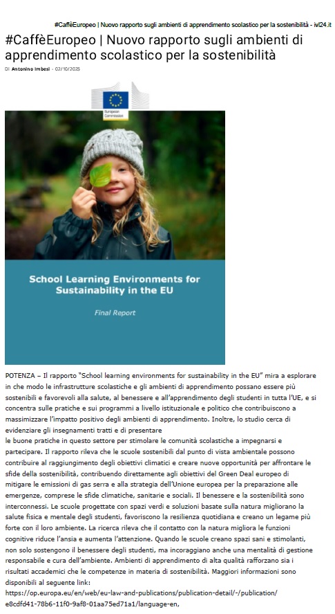 475-Nuovo rapporto sugli ambienti di apprendimento scolastico per la sostenibilità