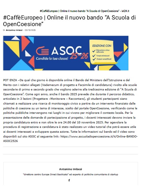 476-Online il nuovo bando “A Scuola di OpenCoesione”