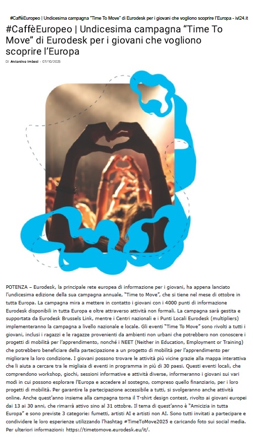 485-Undicesima campagna “Time To Move” di Eurodesk per i giovani che vogliono scoprire l’Europa