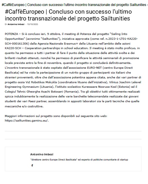 488-Concluso con successo l’ultimo incontro transnazionale del progetto Sailtunities