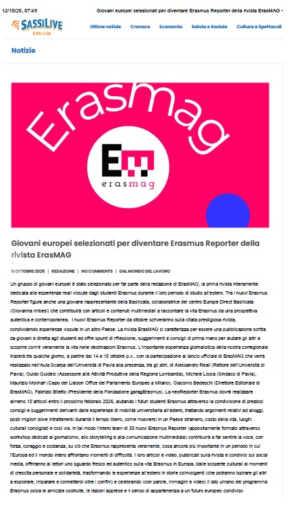 490-Giovani europei selezionati per diventare Erasmus Reporter della rivista ErasMAG