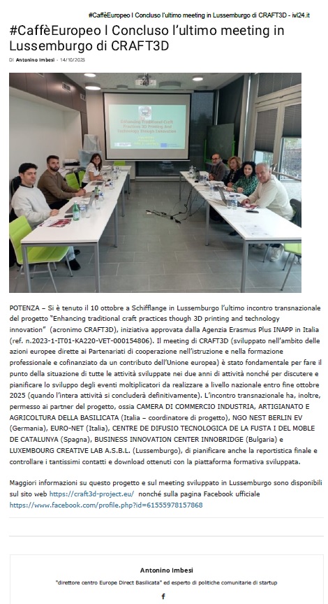 501-Concluso l’ultimo meeting in Lussemburgo di CRAFT3D