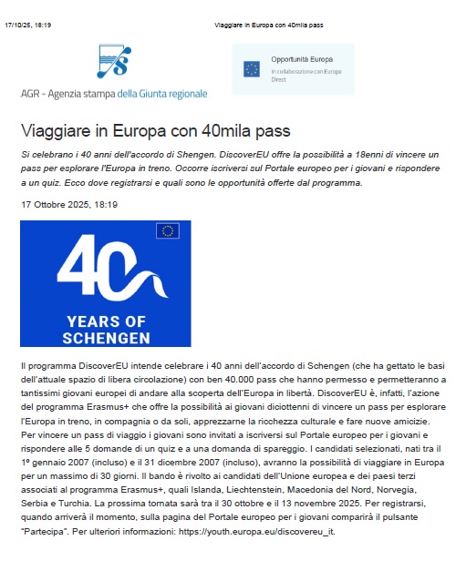 pubblicato su OPPORTUNITA' EUROPA il 17/10/2025