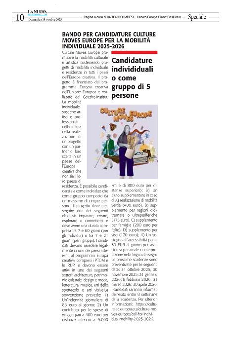 512-Bando per candidature Culture Moves Europe per la mobilità individuale 2025-2026