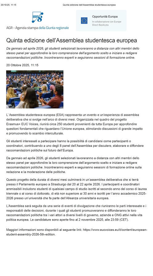 pubblicato su OPPORTUNITA' EUROPA il 20/10/2025