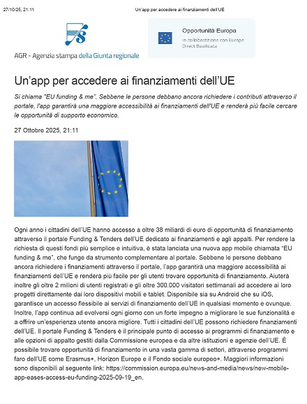 pubblicato su OPPORTUNITA' EUROPA il 27/10/2025