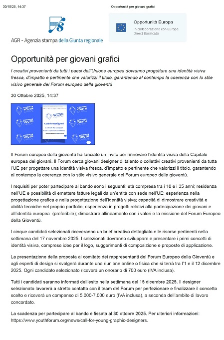 pubblicato su OPPORTUNITA' EUROPA il 30/10/2025