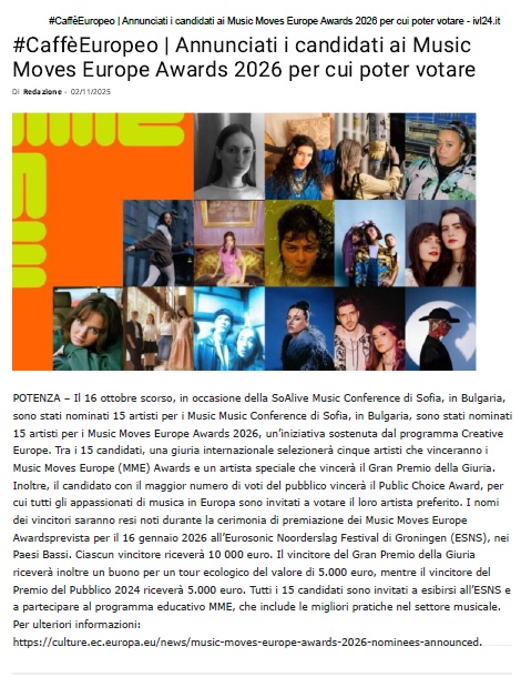 546-Annunciati i candidati ai Music Moves Europe Awards 2026 per cui poter votare