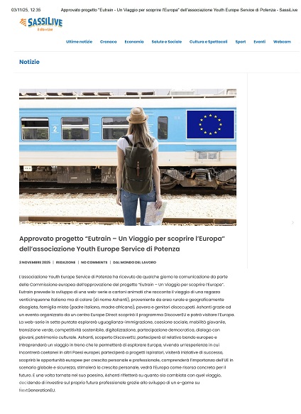 547-Approvato progetto “Eutrain – Un Viaggio per scoprire l’Europa” dell’associazione Youth Europe Service di Potenza