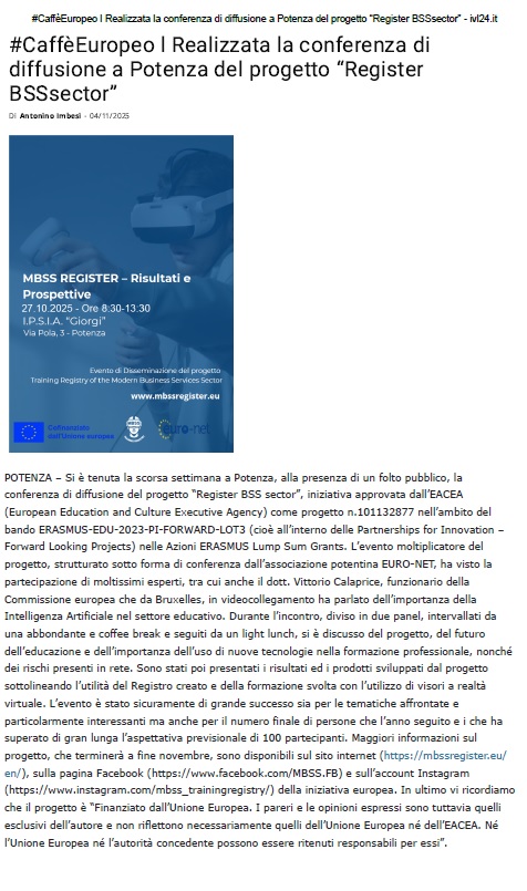 551-Realizzata la conferenza di diffusione a Potenza del progetto “Register BSSsector”