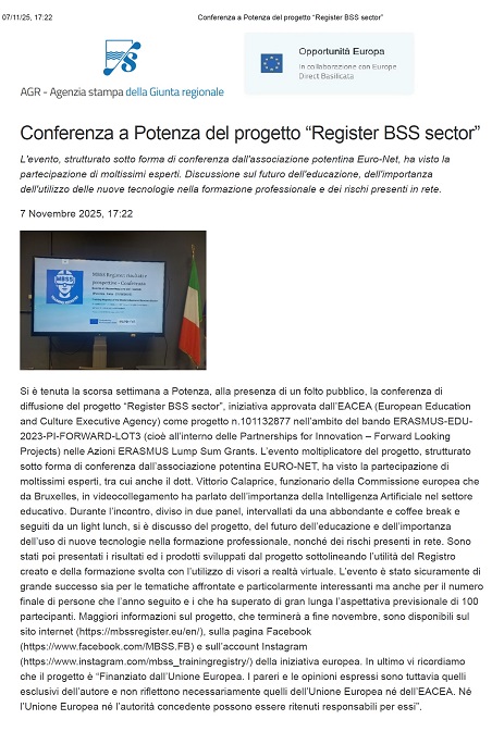 557-Conferenza a Potenza del progetto “Register BSS sector”