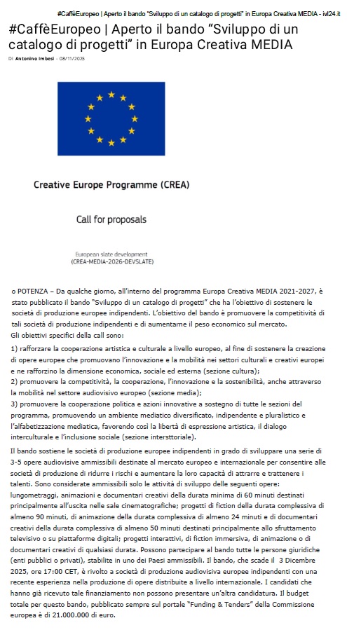 559-Aperto il bando “Sviluppo di un catalogo di progetti” in Europa Creativa MEDIA