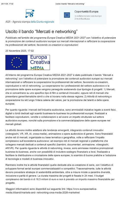 pubblicato su OPPORTUNITA' EUROPA il 25/11/2025