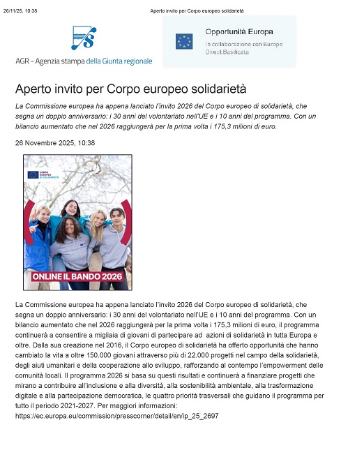 pubblicato su OPPORTUNITA' EUROPA il 26/11/2025