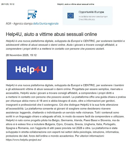 600-Help4U, aiuto a vittime abusi sessuali online