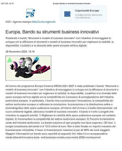 pubblicato su OPPORTUNITA' EUROPA il 28/11/2025