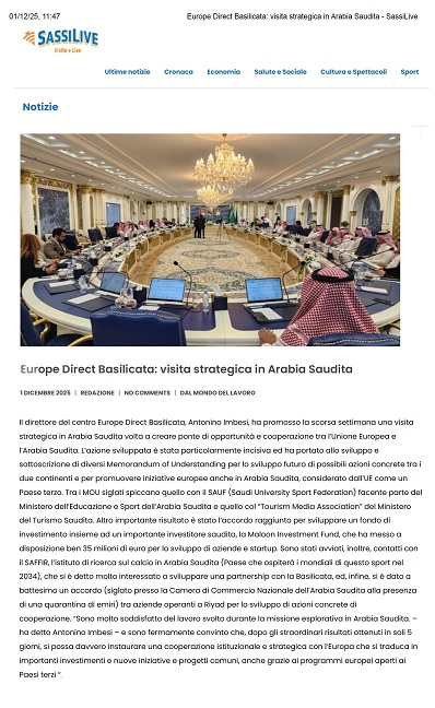 610-Europe Direct Basilicata: visita strategica in Arabia Saudita