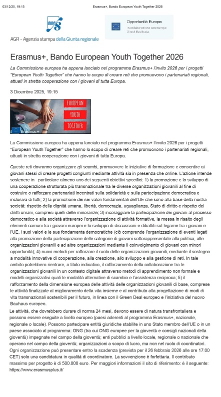 pubblicato su OPPORTUNITA' EUROPA il 03/12/2025