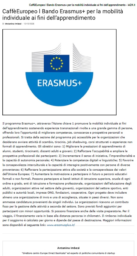 633-Bando Erasmus+ per la mobilità individuale ai fini dell’apprendimento