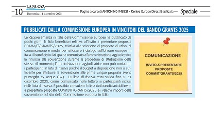 640-Pubblicati dalla Commissione europea in vincitori del bando GRANTS 2025